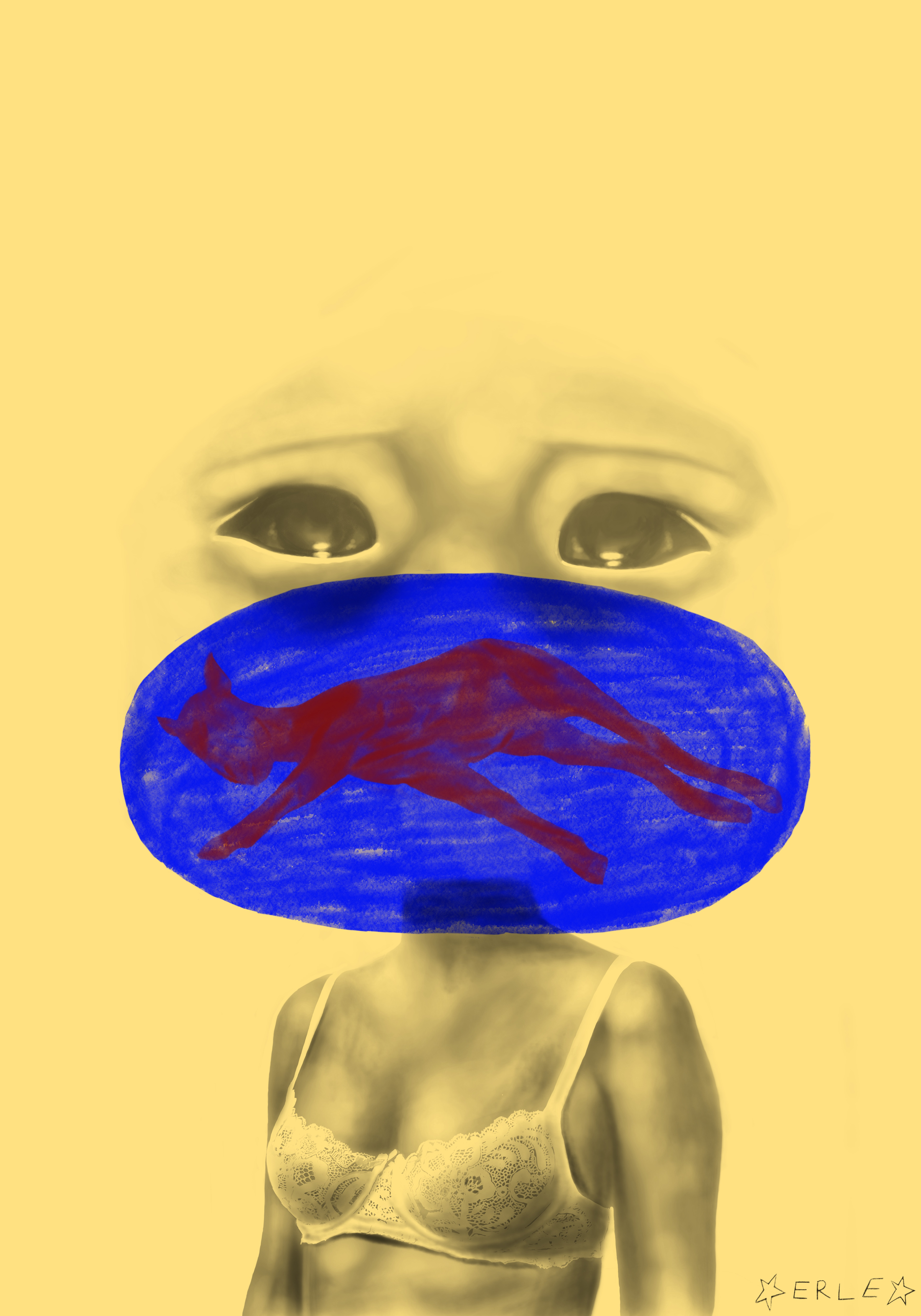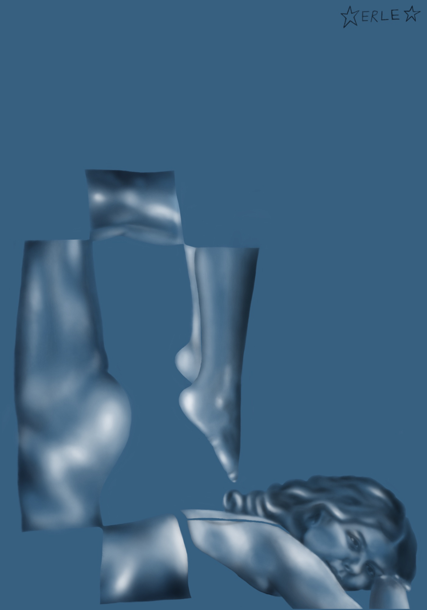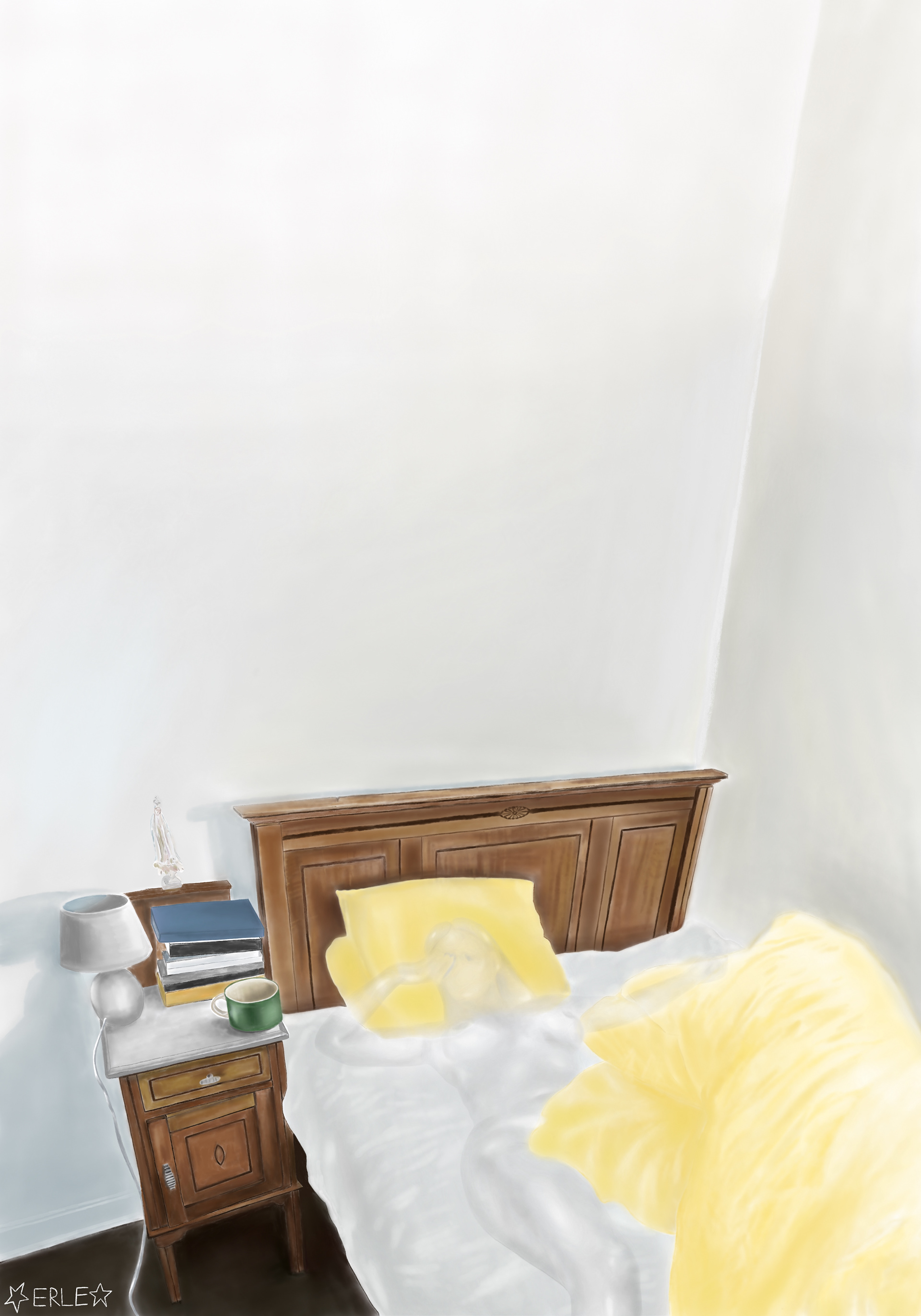 "jenta med gult sengetrekk"_2025_digital drawing, print on paper