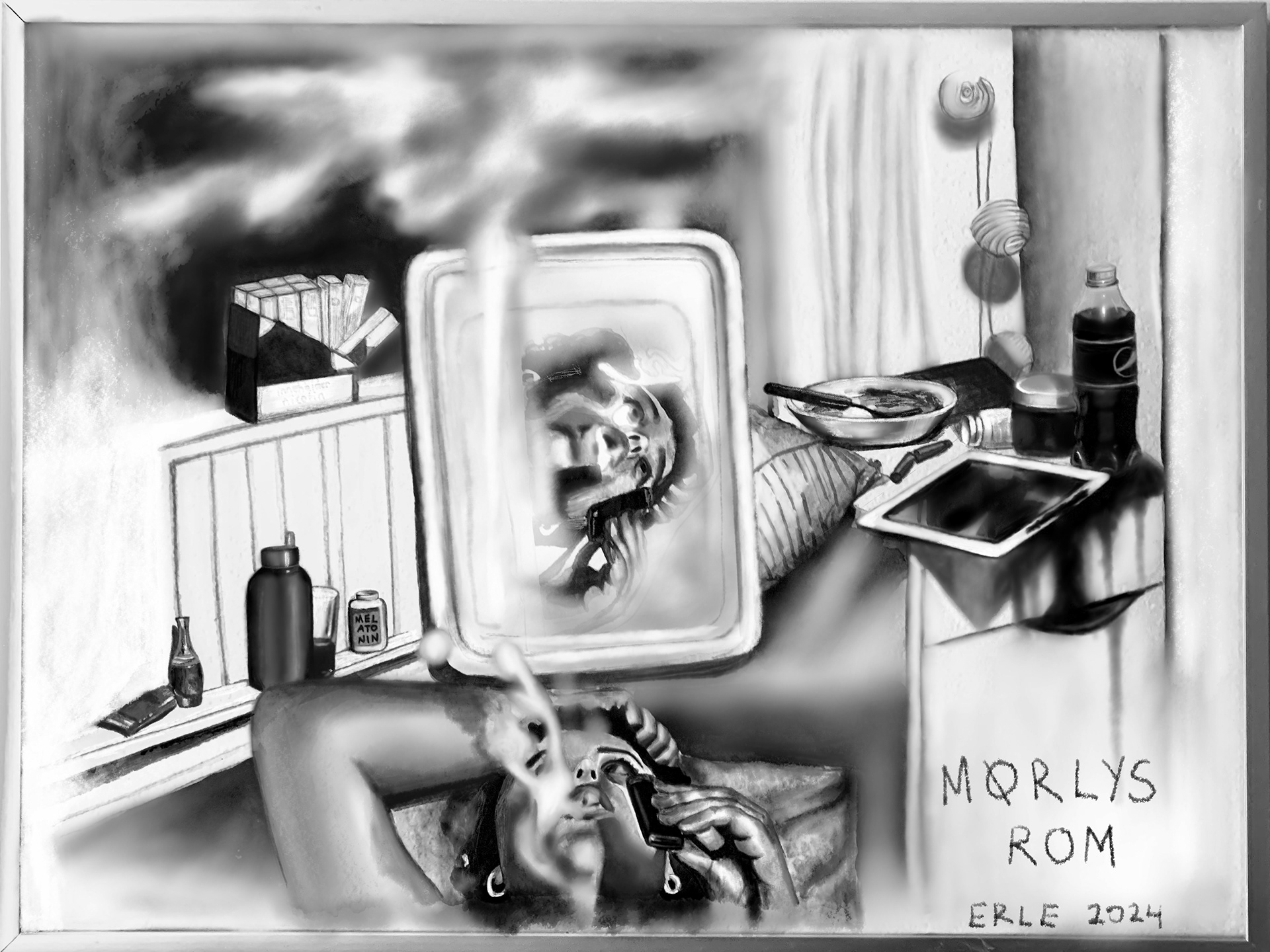 mørlys rom_2024_A3_mixed media: aquarelle and digital drawing
