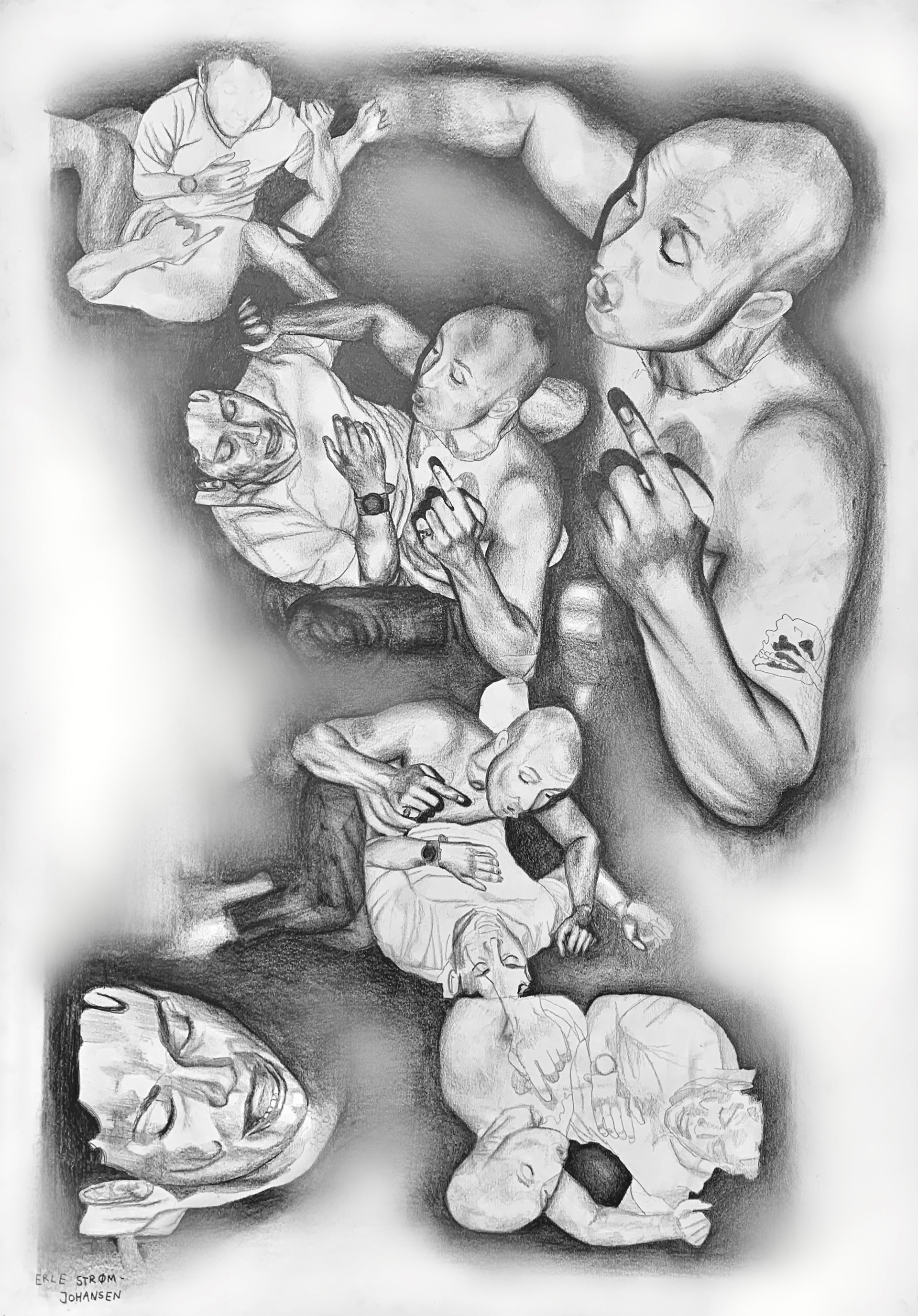"utslitt, men rastløs"_2025_mixed media: pencil and digital drawing, print on paper